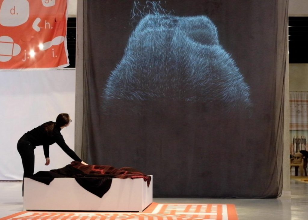 Grâce à des capteurs sur des vêtements, Audrey Briot et Afroditi Psarra arrivent à capter les ondes radio et peuvent donc intercepter des images satellites de la terre. Le Spectre Radio est décrit ici comme l’expression ultime de l’Anthropocène. L’Anthropocène est une époque de l’histoire de la Terre qui a été proposée pour caractériser l’ensemble des événements géologiques qui se sont produits depuis que les activités humaines ont une incidence globale significative sur l’écosystème terrestre. Les télécommunications, la surveillance de l’environnement, la radioastronomie, la radio FM / AM, tout cela passe par le Spectre Radio et est donc indispensable à la société d’aujourd’hui.