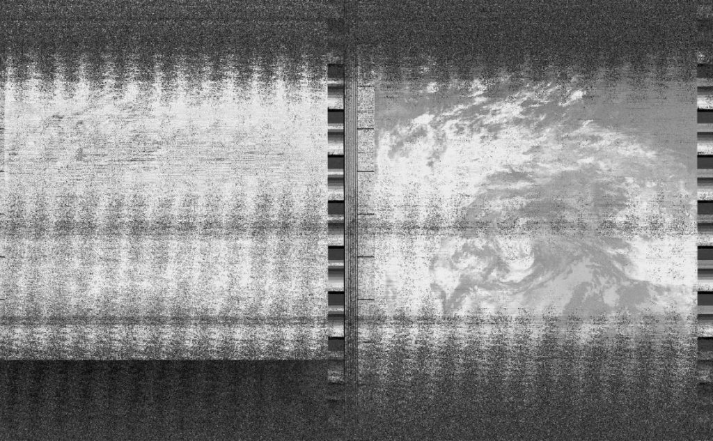 Audrey Briot et Afroditi Psarra, une artiste américaine, ont développé un projet artistique sur l’univers cosmique en s’inspirant de la manière dont les geeks hackaient les antennes des radios. Elles travaillent sur les ondes satellites émises NOAA qui sont des satellites chargés de la météo. Les ondes donnent lieu à des images. Ces satellites sont utilisés par de grands organismes comme Tesla ou encore Space X. Par le biais d’un satellite fabriqué en textile, elles captent des ondes donnant par la suite des images qu’elles retranscrivent à travers un textile tissé à la manière d’un ikat, un tissu japonais. Ce projet vise à montrer le textile comme moyen d’archivage de données qui permet de rendre tangible des éléments habituellement intangibles et la place du corps qui devient un capteur d’image.