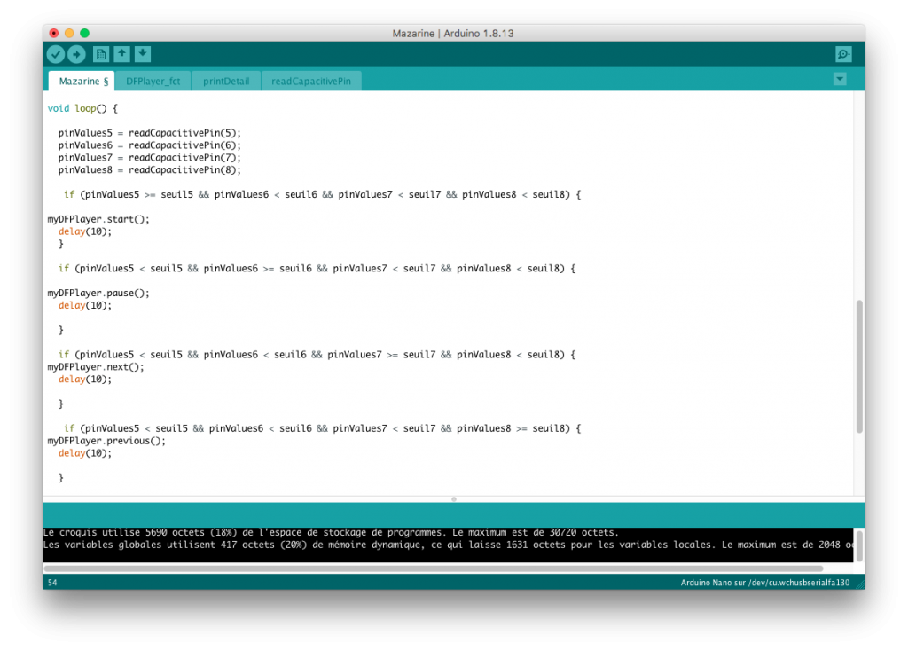 Vos interactions avec les pins sont bien détectées mais le MP3 ne fait pas ce qu’il faut ?