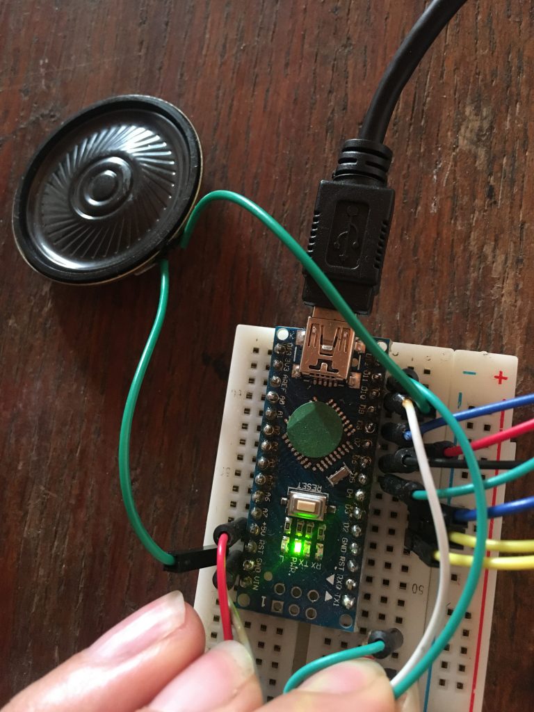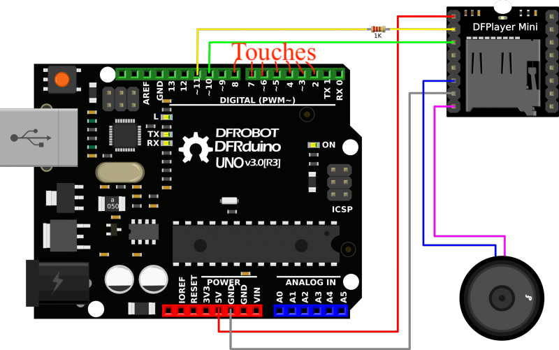 On touche pas aux PIN D2 à D8. On connecte le haut-parleur à GND et D9.